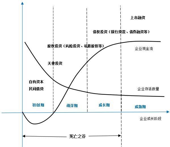 對于科技企業生命周期前期的支持是科技金融非常重要的一環,如果沒有前期培育出來大量的種子,就無法培育大量大型高科技企業(日本和德國高科技產業發展的主要不足就在于這里),發展高新技術產業就缺乏依托。因此,我們將科技金融研究的重點放在對于科技企業生命周期前期,即如何從金融角度分析如何促進跨越“死亡之谷”。