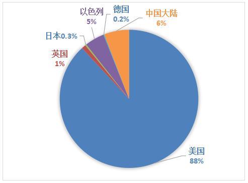從納斯達克上市企業(yè)統(tǒng)計來看,美國和中國遠遠領先,日本和歐盟比例遠遠低于這兩個國家,中國和以色列上市公司數(shù)量占全部上市公司的數(shù)量分別為6%和5%,表現(xiàn)突出。