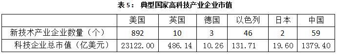 (2)從市值總額上,美國遙遙領先,高科技企業(yè)總市值高達23122億美元,中國緊隨其后,1379.4億美元;英國位列第三,為486.14億美元;以色列位于第四名,131.71億美元;日本、德國相對較弱。