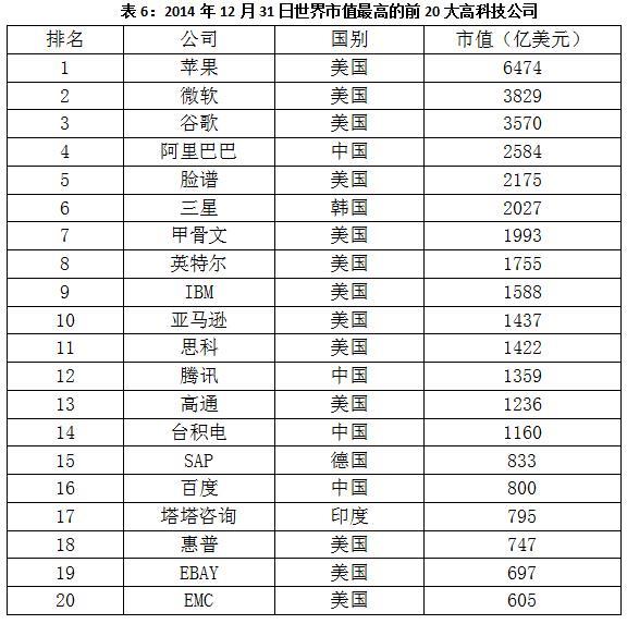 從全球市值最高的20家高科技公司來看,美國所占的數(shù)量為13家,中國為4家,韓國、德國、印度各1家,歐洲和日本領先高科技公司數(shù)量遠遠少于美國。