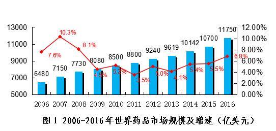 1.世界藥品市場規模緩慢擴張生物醫藥作為21世紀的朝陽產業現在已經成為全球新的經濟增長點。據測算,過去5年,世界藥品市場年均增長速度保持在6.2%,且目前正處于不斷增長中。從世界生物醫藥產業發展趨勢來看,預計到2016年之后將進入快速發展期,并逐步成為世界經濟的主導產業。