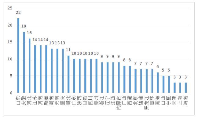 國家農業科技園區是保障國家糧食安全的重要基地,是加快農業科技創新創業和成果轉移轉化的重要平臺,是推動農業產業升級和結構轉型的重要支撐,是探索農業科技體制機制改革創新的重要載體。《國家農業科技園區發展規劃(2018-2025年)》提出:到2025年,把園區建設成為農業科技成果培育與轉移轉化的創新高地,農業高新技術產業及其服務業集聚的核心載體,農村大眾創業、萬眾創新的重要陣地,產城鎮村融合發展與農村綜合改革的示范典型。截止2020年底,科技部已認定國家農業科技園區九批共303個,其中東部地區94個、東北地區23個、中部地區70個、西部地區116個,西部地區占比最大。從省份來講,山東省擁有國家農業科技園區最多,達22個;天津、上海、海南擁有國家農業科技園區最少,為3個。