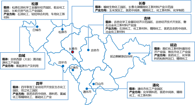 長春榆樹生物化工園區 吉林經濟技術開發區 四平經開區生態化工園 通化市化工產業園 長嶺天然氣化工產業園 |